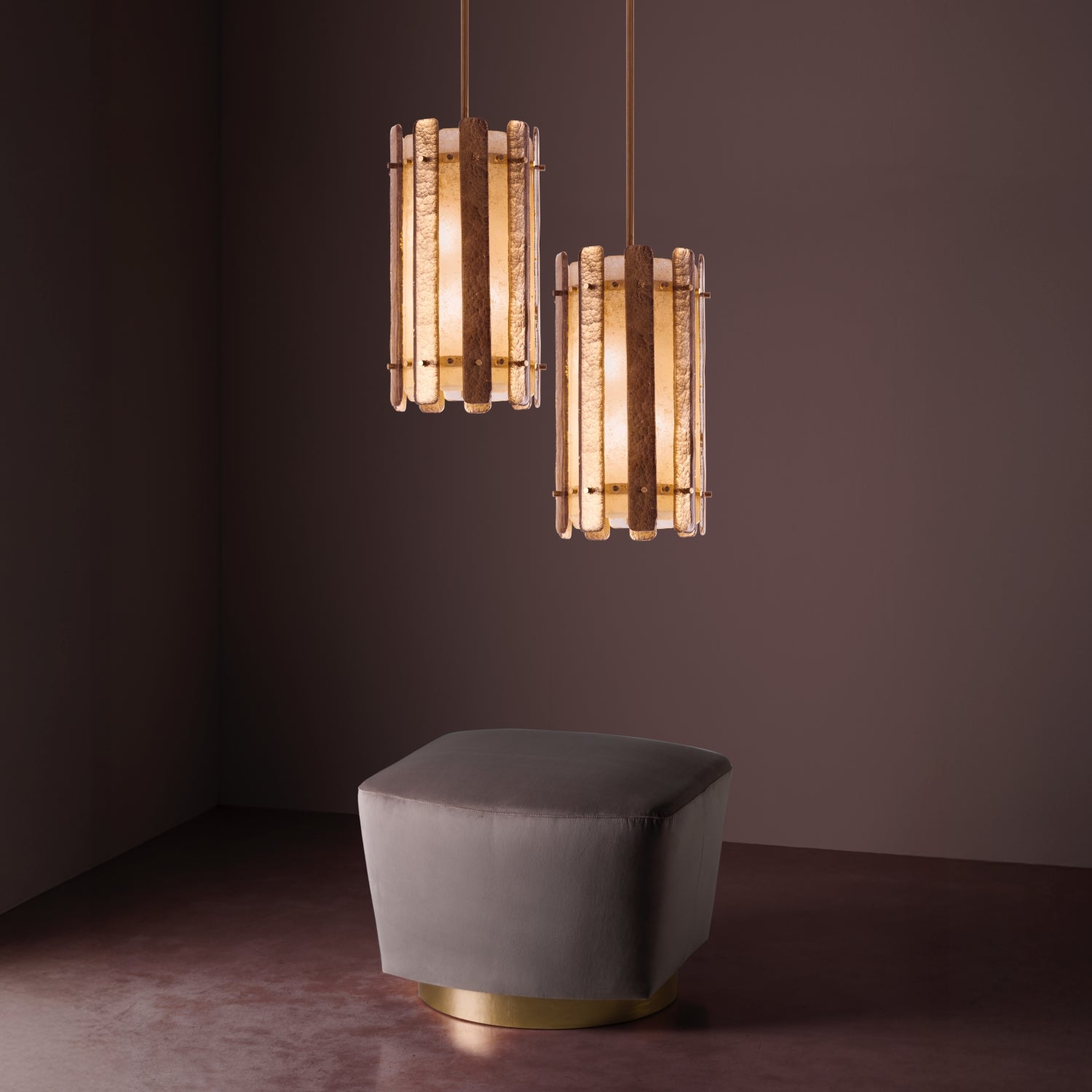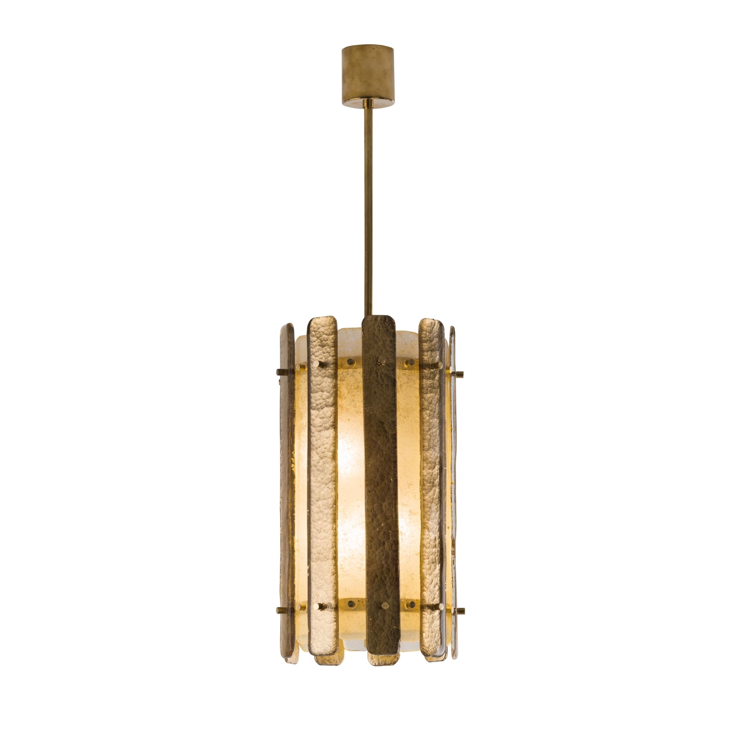 Give your home a glamourous touch with this stunning tubular shape Blush chandelier made from brass bronze plated and Murano glass elements. The timeless allure of this piece allows it to fit both classic and modern interiors, where the six bulbs shine their light through the glass cylindrical shade. A series of frosted and colored Murano glass elements hides the reflection at fixed intervals, adding a unique texture to the silhouette.ChandelierCollection : BlushFrosted and colored Murano glass elements Creating an eye-catching effectMaterial: brass bronze plated, murano glassBronze plated Dimensions: H95x Ø27cm.Weight : 15 KgHandmade in Italy