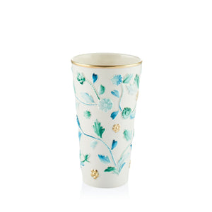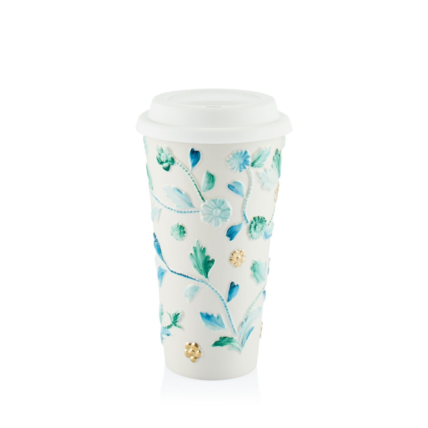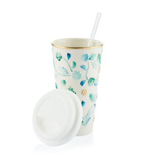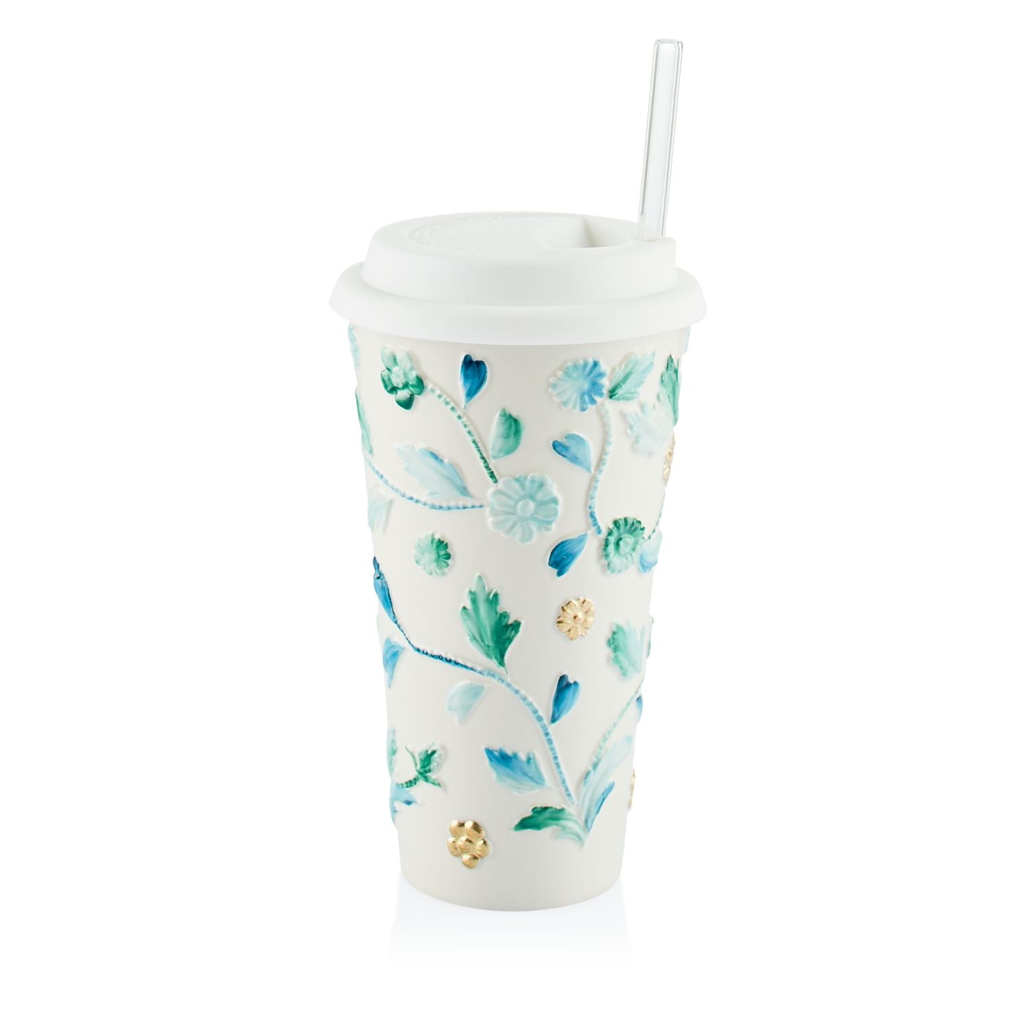 The Taormina Turquoise & Gold Travel Mug channels the calm brilliance of the Mediterranean. Crafted in fine porcelain and enriched with serene turquoise tones, it is finished with hand-applied 24ct gold accents that elevate its every curve. This elegant vessel brings together timeless design and contemporary flair, offering a refined solution for those who demand beauty in motion. Ideal for morning rituals, weekend getaways, or thoughtful gifting, it is a portable expression of Italian artistry. Travel Mug Taormina Turquoise porcelain with brilliant 24ct gold trim Ideal for stylish beverage moments on the go Handmade in Italy